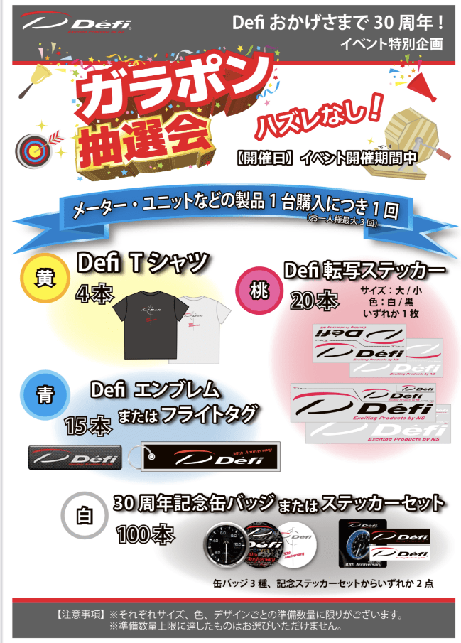 ハズレなしでDefi30周年グッズがお得にゲットできるチャンスです。